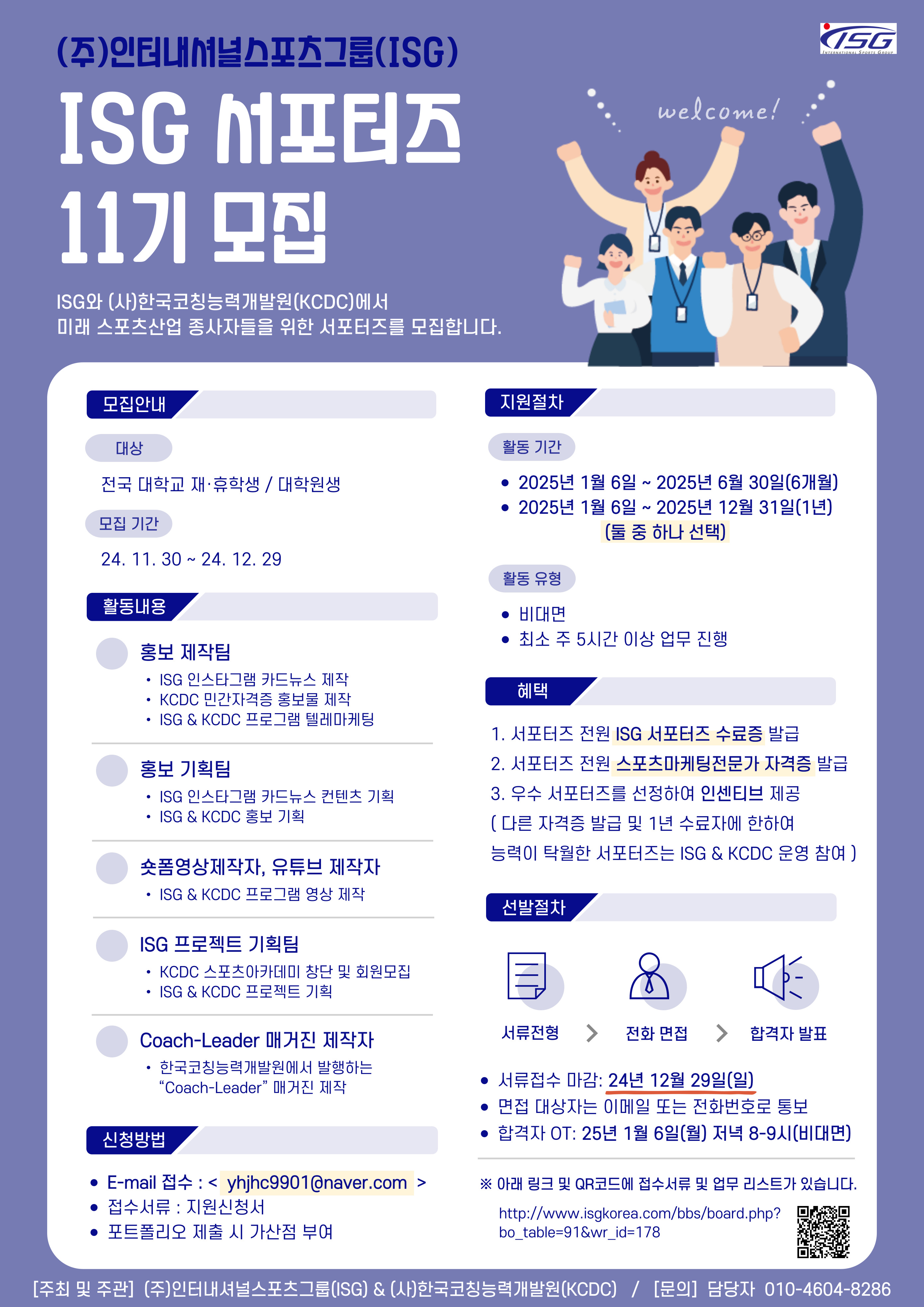 3. 우수 서포터즈를 선정하여 인센티브(다른 자격증 발급 및 1년 수료자에 한하여 능력이 탁월한 서포터즈는 대표와 논의해서 ISG & KCDC 운영 참여제공