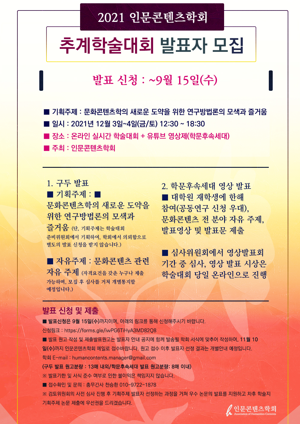 학회 E-mail: humancontents.manager@gmail.com