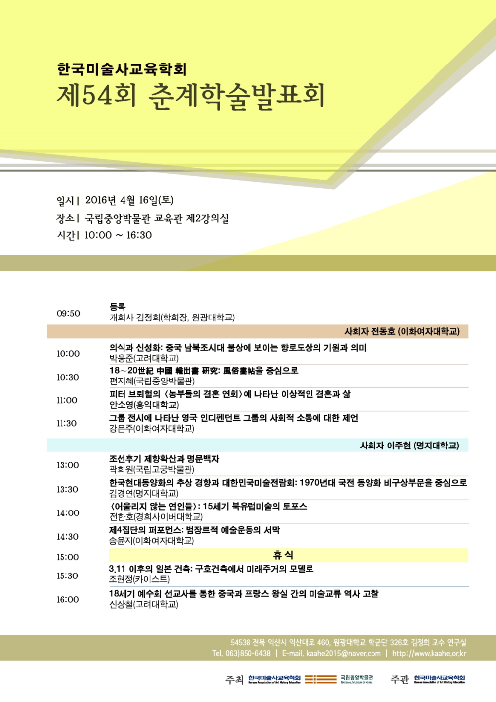 한국미술사교육학회에서는 2016년 춘계학술발표회를 다음과 같이 개최하오니,